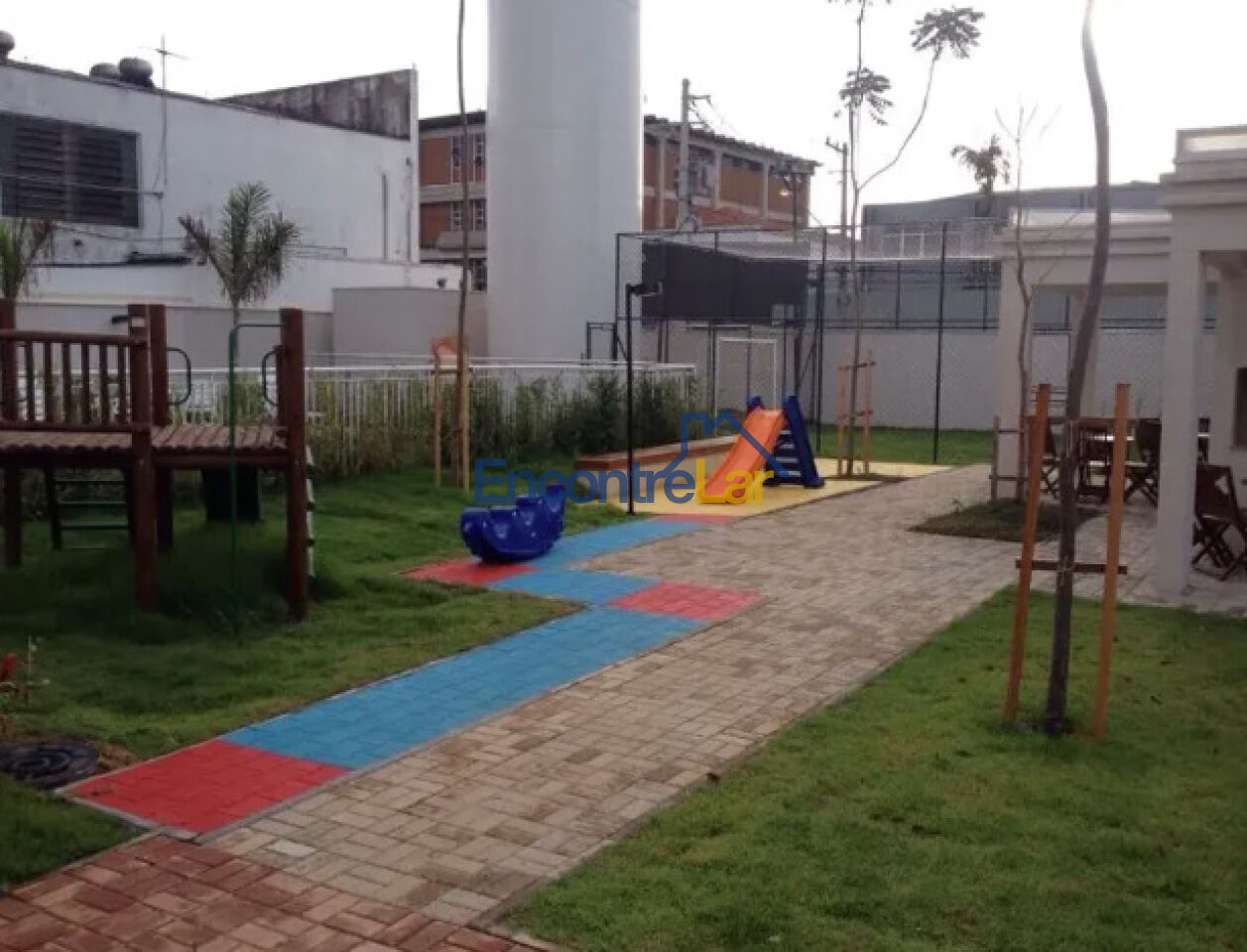 O condomínio oferece uma ampla infraestrutura de lazer com piscina, brinquedoteca, churrasqueira, portaria 24 horas, quadra poliesportiva, sala de jogos e salão de festas.