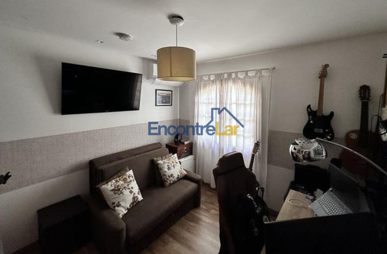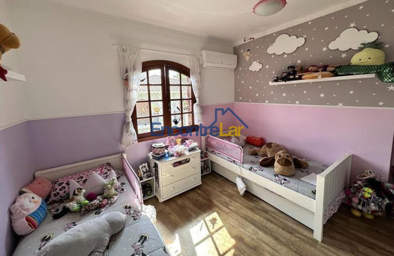 Possui 3 dormitórios, todos com ar-condicionado, sendo 1 suíte, 2 banheiros (suíte+1) e lavabo, sótão habitável, 3 depósitos (1 anexo ao sótão, 1 no andar dos quartos e 1 na garagem), sala espaçosa com ar-condicionado, grande cozinha também com ar-condicionado e com 2 ambientes, lavanderia e quintal com área gourmet completa com pia, churrasqueira e cooktop, ampla garagem para 3 carros mais moto, bicicletário, depósito e espaço para oficina / atelier / estúdio. Condomínio seguro, tranquilo, com baixíssimo custo de manutenção e excelente vizinhança.